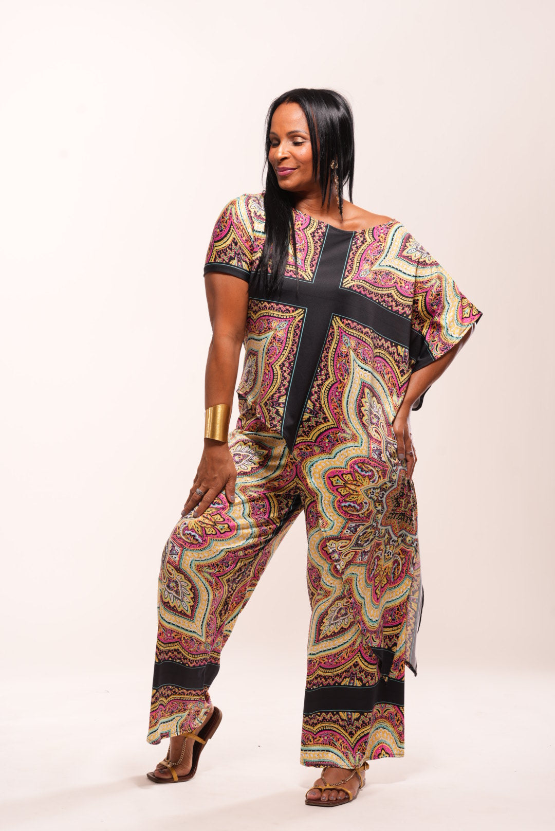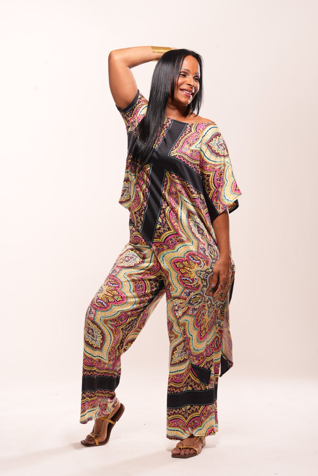 These handmade straight-leg pants in a paisley-inspired stretch fabric are designed with an elastic waistband for mobility and comfort. Their versatile cut makes them perfect for Sunday gatherings, travel days, or styled chic for a date night.