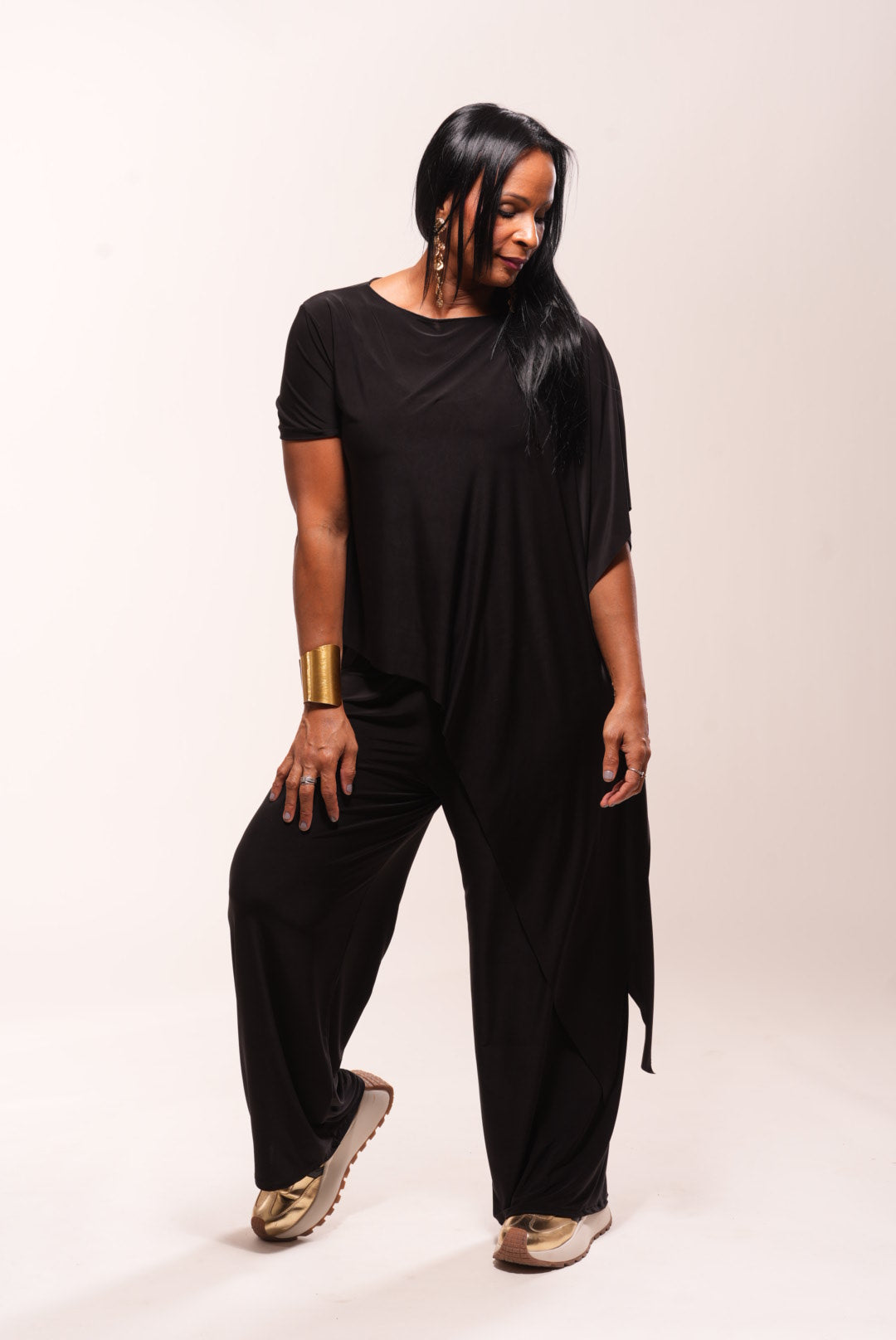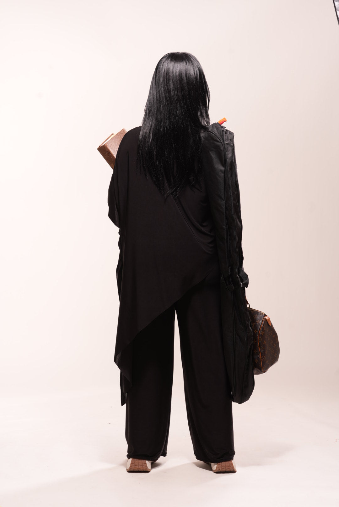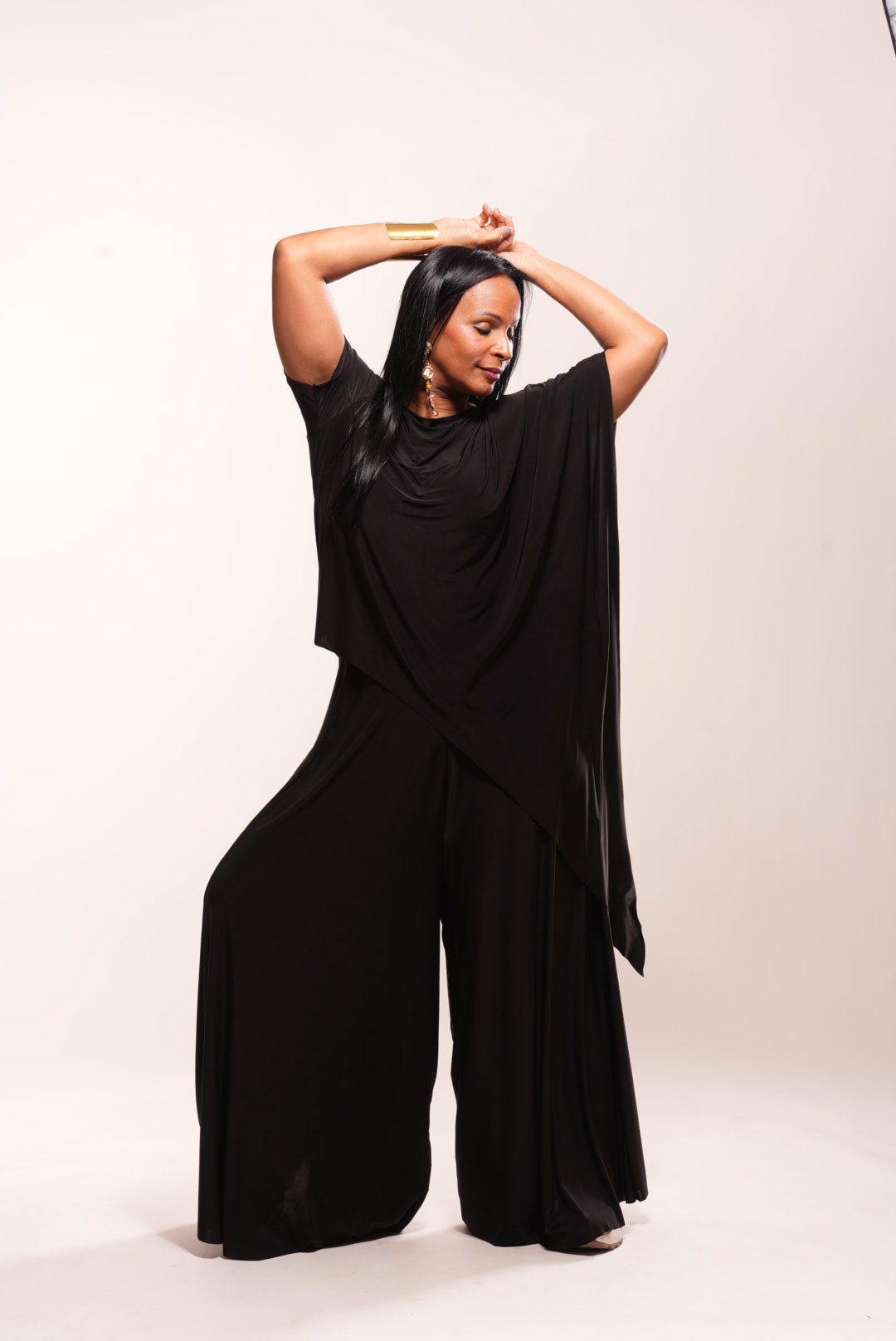 This handmade black or white stretch top features a clean asymmetric cut that combines comfort with bold simplicity. Designed to transition from church services to evening events, from travel days to casual outings, it is modest, elegant, and flexible enough to dance in.