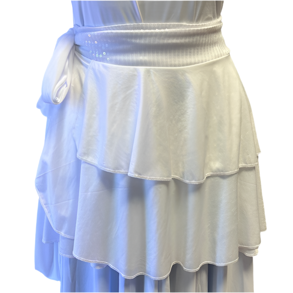 Flow with grace and beauty in this luxurious satin wrap-around skirt, designed to add a layer of elegance and movement to your praise and worship garments. The sequin details subtly catch the light, creating a beautiful accent during ministry and stage performances.