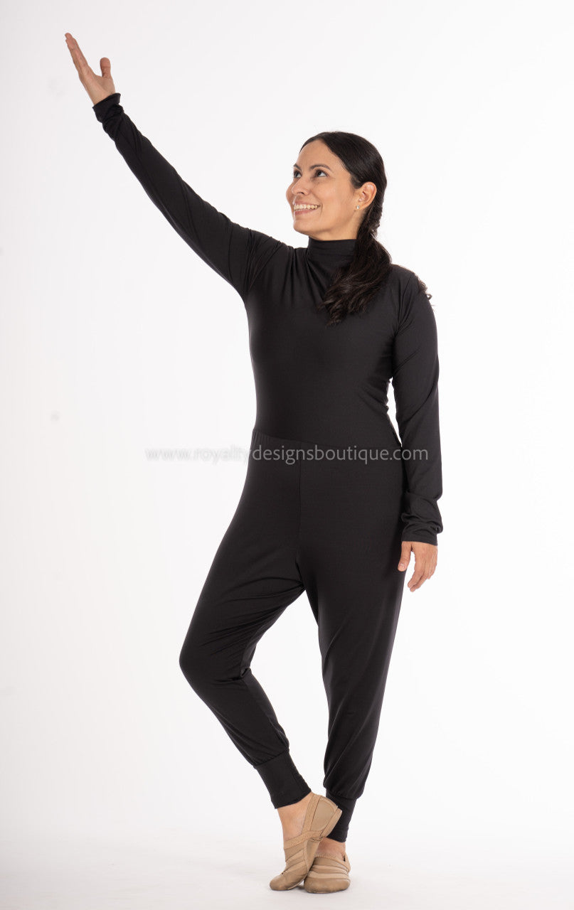 Shine with elegance and move with ease in our Capri Unitard (Pant/Leotard), crafted from luxurious stretch satin for a smooth, glossy finish and flexible comfort. This versatile base piece offers excellent coverage and mobility, making it ideal to wear alone or layered under tunics, skirts, or overlays for praise dance and worship.